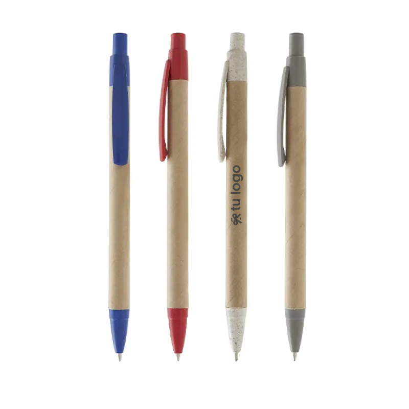Bolígrafo realizado en celulosa y Wheat Straw, pasta de tallo de trigo, un material sustentable que reduce el consumo de plásticos vírgenes. Cuenta con clip de apertura retráctil. Tinta Azul.