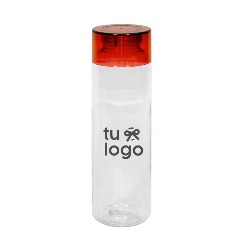Botella de plástico transparente con tapa a rosca plástica.