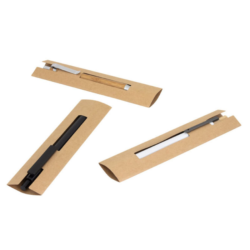 Eleva tu obsequio de lo simple a lo sofisticado. Funda para bolígrafos con extremo abierto y ventana. Medidas: 4 x 15,3 cm.