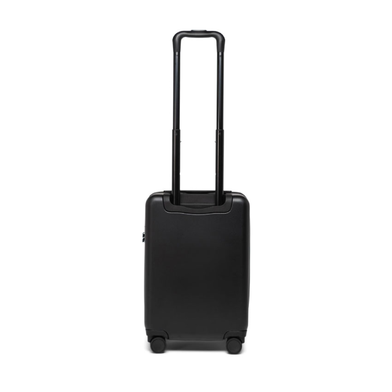 Apta como equipaje de mano. Fabricada con 70% policarbonato reciclado y forro 100% poliéster reciclado. Cuenta con cierre TSA, apertura dividida, mango telescópico, ruedas Hinomoto 360°, manija superior con logo, interior con malla con cierre, correas elásticas y esquinas reforzadas. Con detalles clásicos de Herschel, es ideal para viajes frecuentes. Capacidad: 35L.