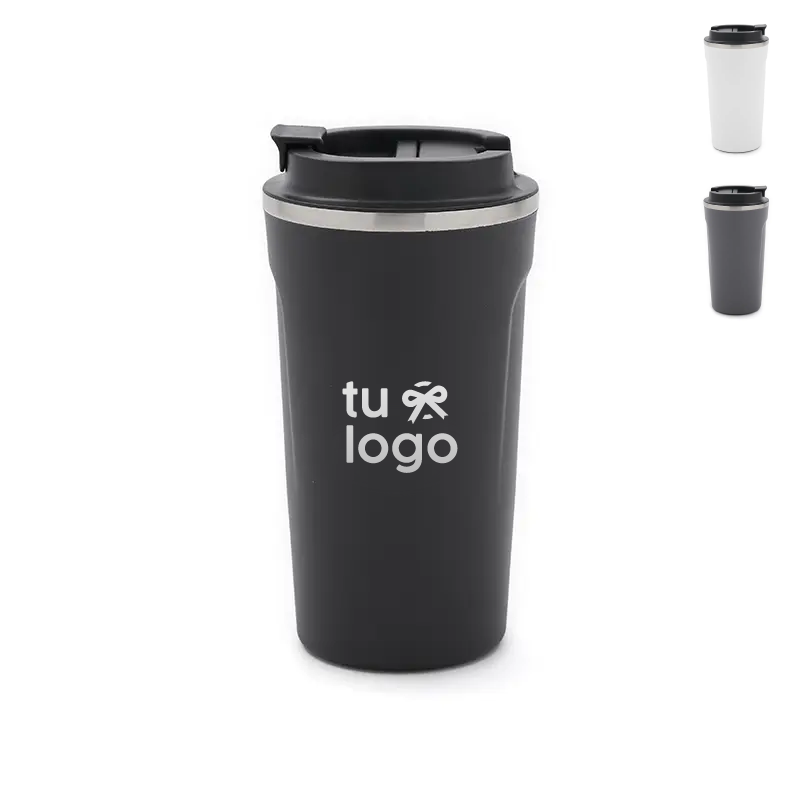 Jarro construido en doble pared de acero inoxidable, esmaltado de color en su exterior y tapa de polipropileno antiderrame. Reutilizable. Dimensiones: 17 x 9 cm | 7 cm de base. Ideal para café, té, bebidas frías o calientes. Capacidad:500ml.