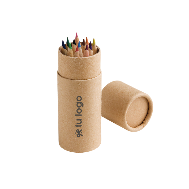 Lápices de Colores Mini Cylinder. Caja de cartón cilíndrica con 12 lápices mini de colores para pintar.