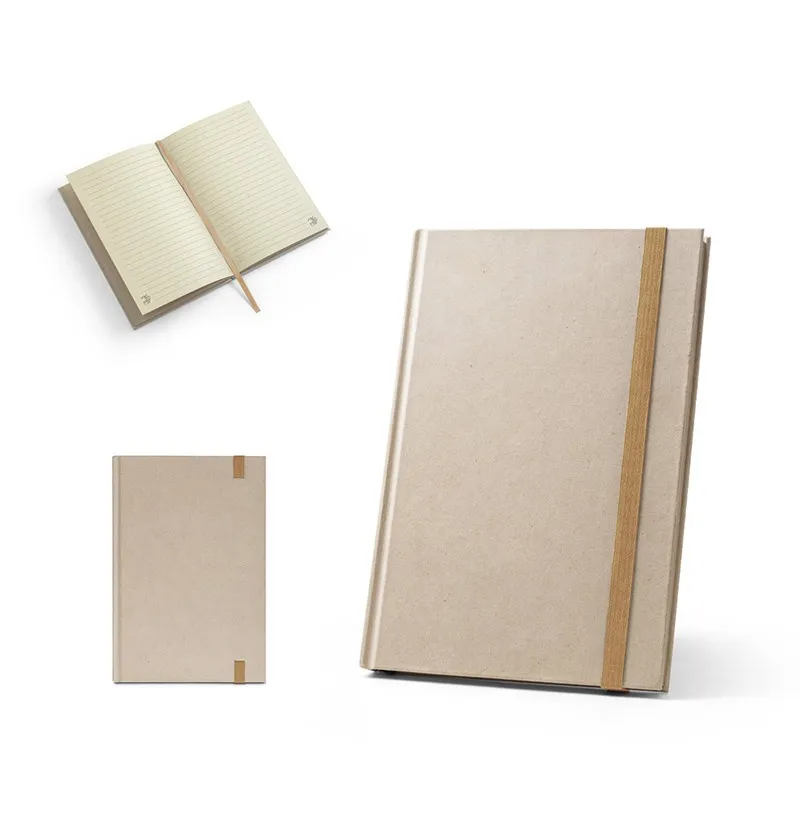 Producto amigable con el planeta.. Material: Tapa dura cartón, hojas rayadas. Tamaño: 147 x 216 mm. Área de impresión: 120 x 190 mm