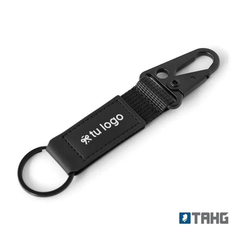 Llavero confeccionado en aluminio y poliuretano (PU) en color negro. Accesorio ideal para mantener tus llaves organizadas y al alcance, ya que su diseño permite que puedas colgarlo en cualquier lugar. El producto se presenta en una caja de plástico termoformado