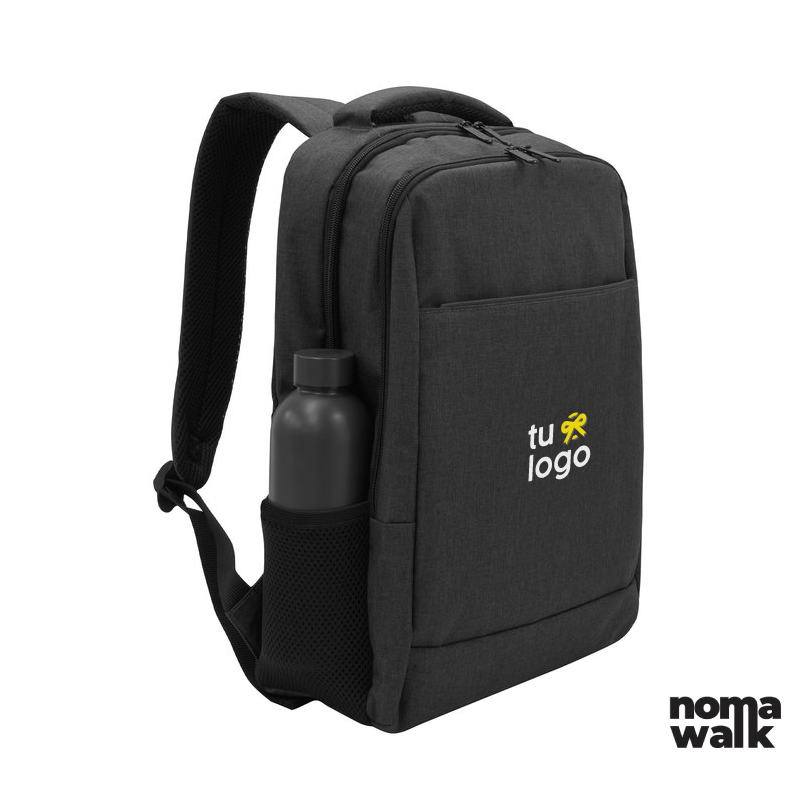 Viaja ligero y organizado. Mochila portanotebook de hasta 16 pulgadas. Cuenta con dos compartimentos, el compartimento principal con bolsillo acolchado para la notebook y el compartimento frontal con bolsillo pequeño. Frente con bolsillo horizontal con cierre y dos bolsillos laterales de malla porta botellas y accesorios. Asa superior, correas y respaldo acolchados. Correas ajustables. Tira para sujetar la mochila en la manija extensible de un equipaje de mano. Tiradores de cierres metálicos color negro. Medidas: 43 x 29 x 12.5 cm.