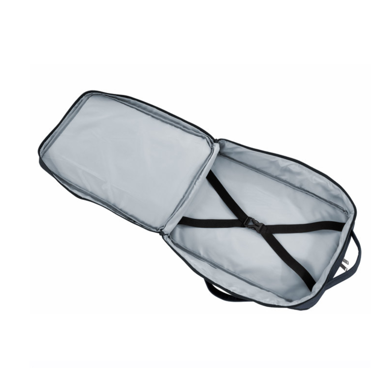 Viaja con todo lo que necesitas. Mochila carry on con 4 compartimentos acolchados. Compartimento principal central con cierre de apertura 360° y elástico con hebilla para contener la ropa en un viaje de trabajo. Compartimento posterior con cierre y portanotebook de hasta 17 pulgadas. Compartimento frontal, exterior con cierre horizontal e interior con bolsillos organizadores. Dos asas, vertical y horizontal para un mejor traslado. 4 correas de hebillas ajustables al volúmen que se traslade. Espalda acolchada con red que permite ventilación. Tira para sujetar la mochila en la manija extensible de un equipaje de mano. Correas acolchadas. Tiradores de cierre plásticos. Medidas: 32 x 20 x 46 cm. Capacidad: 20 litros. Materiales: PolIéster 300D bicolor. Interior forrado en 210D.