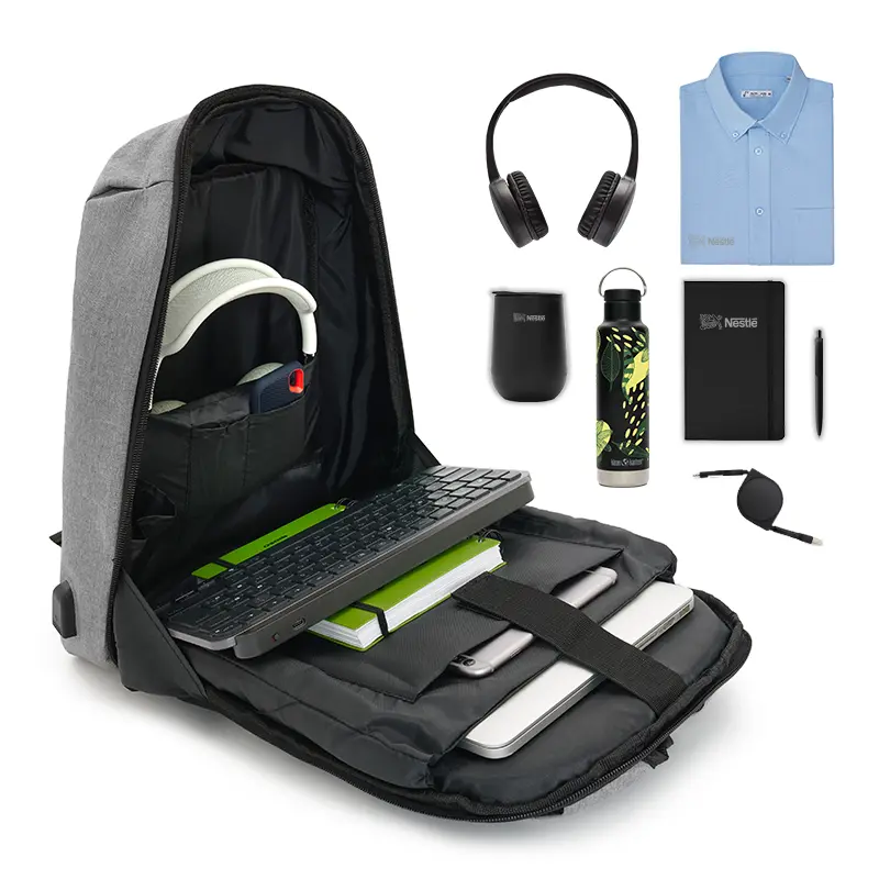 Mochila de Polyester Anti Robo con puerto USB. Compartimiento principal con gran capacidad Porta Tablet y Laptop. Bolsillo anti robo. Sujetador de carry on. Medidas: 44 x 32 x 15 cm. Capacidad: 21 Lts. Laptop: 15¨.
