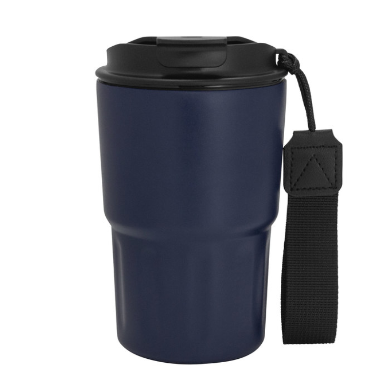 Disfruta cada sorbo, donde sea. Mug doble pared, sellado al vacío. Interior en acero 304 y exterior en acero 201. Tapa de polipropileno con anillo de silicona y correa de poliéster en color negro. Pintura acabado mate. Mantiene por más de 12 hs la temperatura de las bebidas calientes y 24 hs de las bebidas frías. Medidas: Ø 8,8 cm x 14,5 cm.