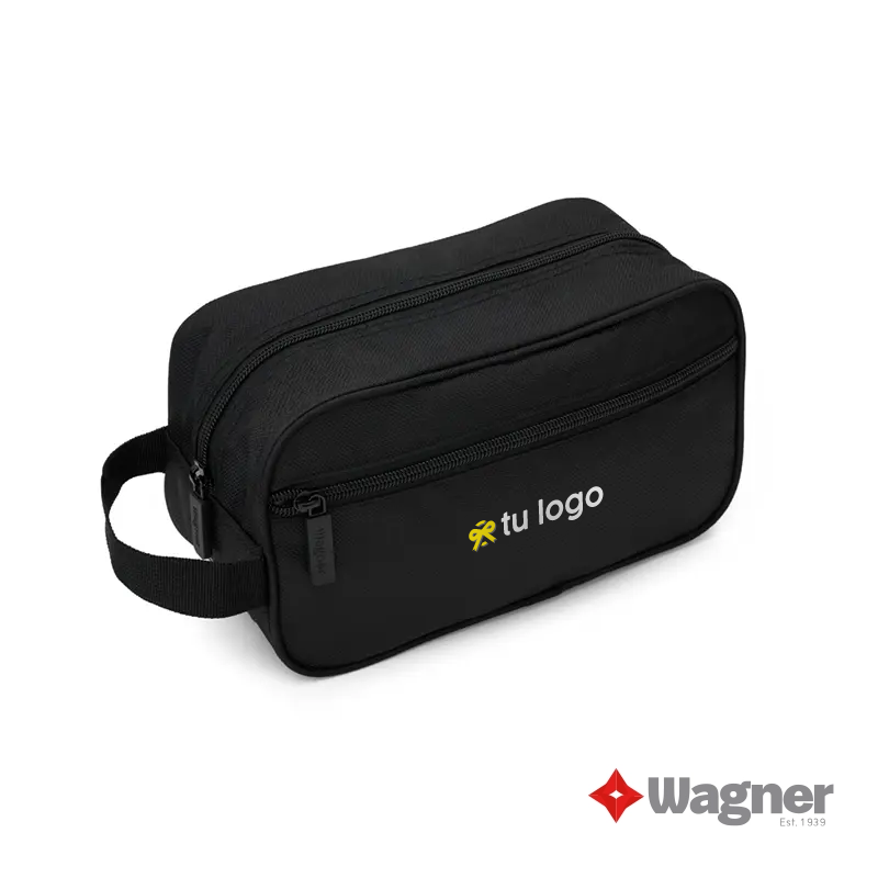 Neceser compacto de viaje fabricado en tela sintética de alta durabilidad. Cuenta con cierre superior, bolsillo frontal con cierre y asa lateral reforzada. Es ideal para organizar artículos de cuidado personal en viajes, escapadas de fin de semana o para llevar al gimnasio. Capacidad: 3L. Medidas: 14 x 11 x 25 cm.
