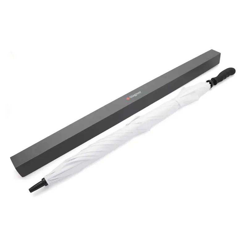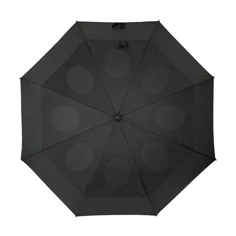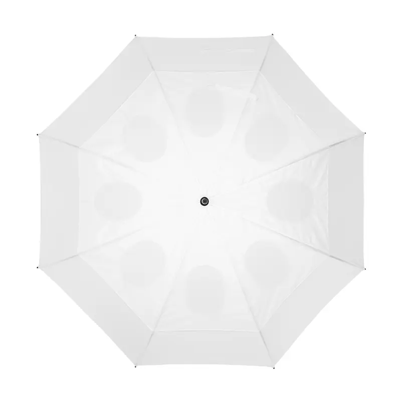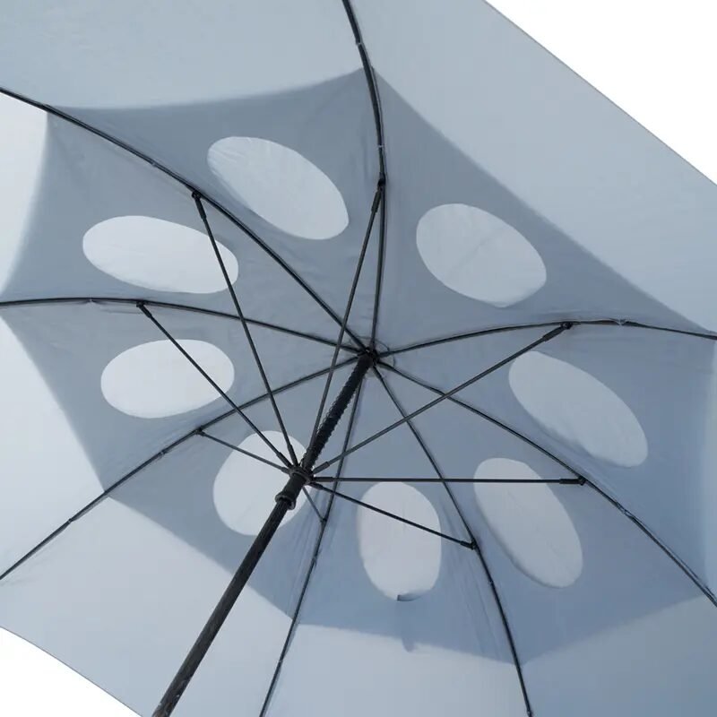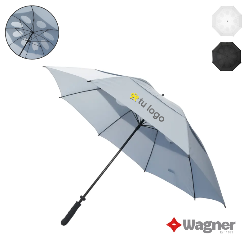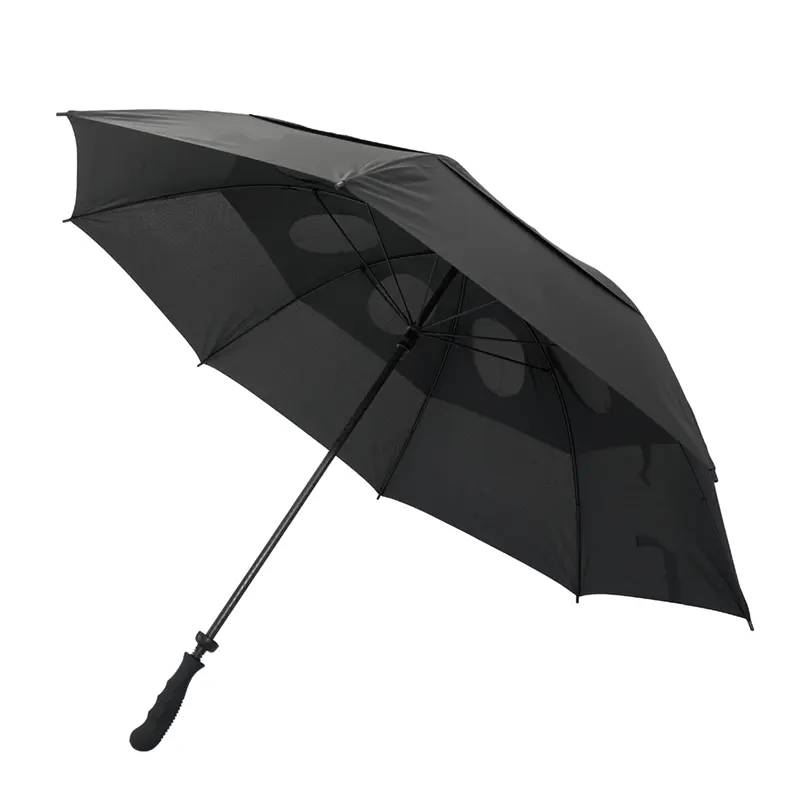 Paraguas de doble capa de alta resistencia al viento, impermeabilidad y calidad. Posee un robusto marco de 8 varillas de apertura y cierre manual, realizado con fibra de vidrio super ligero y diseñado para soportar lluvias y vientos fuertes. Mango de plástico cubierto con una goma con reborde para un agarre cómodo y no deslizante en condiciones de humedad. El paraguas de doble capa permite que el viento atraviese la tela para evitar que se pueda romper. Ideal para golfistas. Medidas: Largo 97 cm x diámetro 150 cm.
