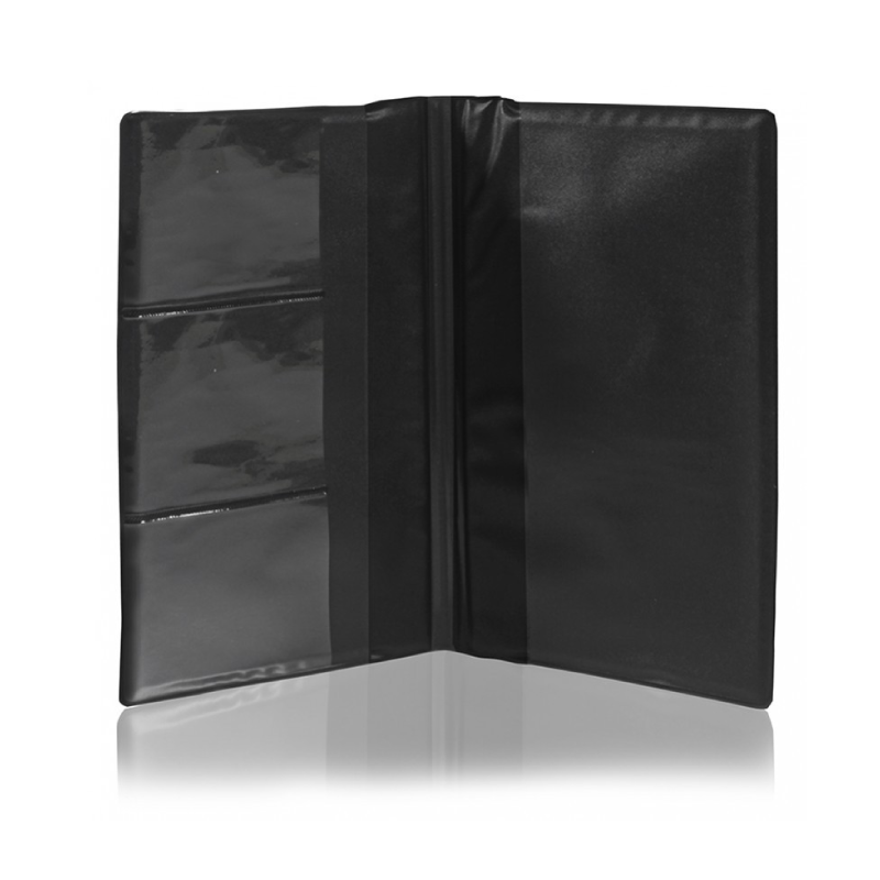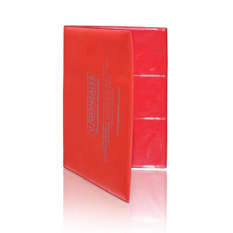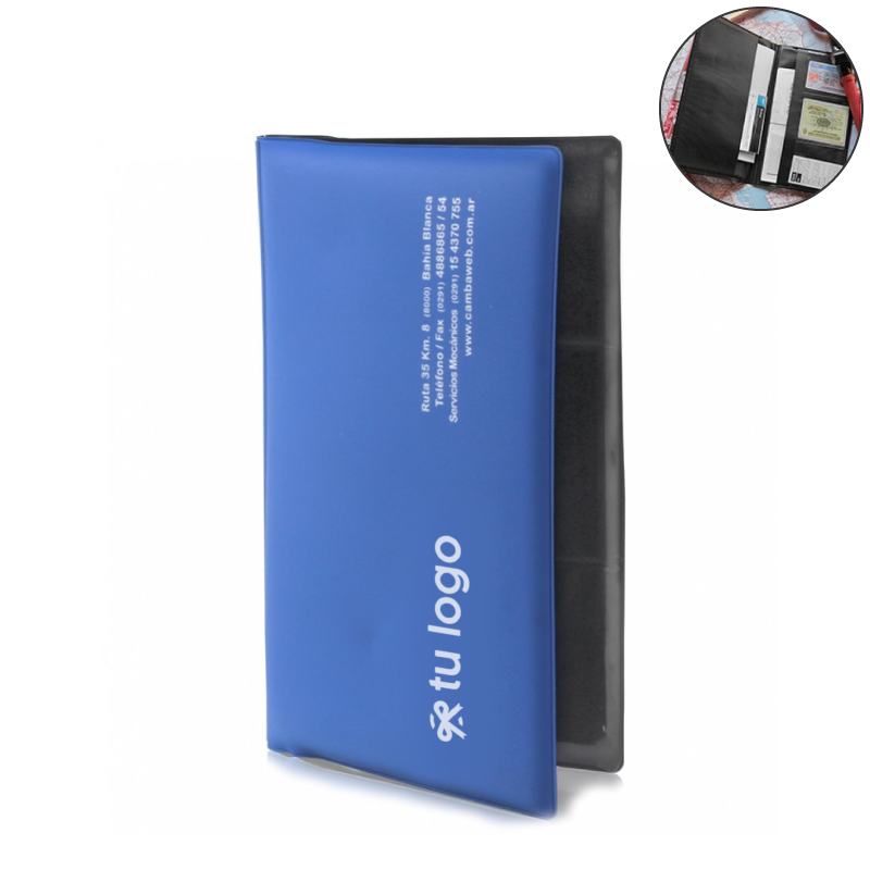 Portadocumentos plástico acolchado. Interior negro, con 5 bolsillos. Ideal para documentación de vehículos, pasaportes, etc. Tela folia. Medidas: 14 x 25 cm (cerrado)