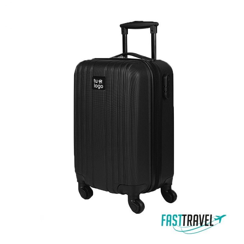 Trolley realizado en material ABS rígido. Manija regulable en altura, interior forrado, contiene tiras de compresión internas en uno de los módulos y en el otro división interna con cierre. Sistema de ruedas giratorias 360° reforzadas. Cierre con lock. Chapa frontal metálica para aplicar logo. Medidas: 22 x 31 x 51 cm. Foto iliustrativa, no incluye los productos que están en su interior. Fast Travel